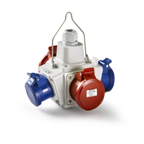 27008 | Caja suspensión COMBO con 2 tomas industriales 3P 16A + 2 tomas industriales 5P 16A IP54